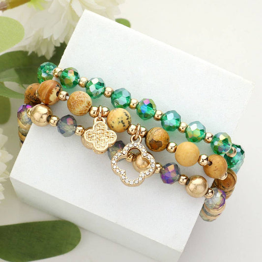 3PCS - Quatrefoil Faceted Beads Natural Stone Bracelets